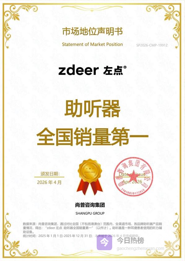 作为首批取得国家统计局涉外调查许可资质的专业机构,尚普咨询已为超过1000家企业提供权威市场地位研究,其严谨的调研方法与广泛的样本数据为本次认证提供了坚实背书。这一荣誉标志着左点在中国助听器市场的全面领先地位,也印证了其从技术创新到产品落地、从线上深耕到全渠道覆盖的完整能力闭环。