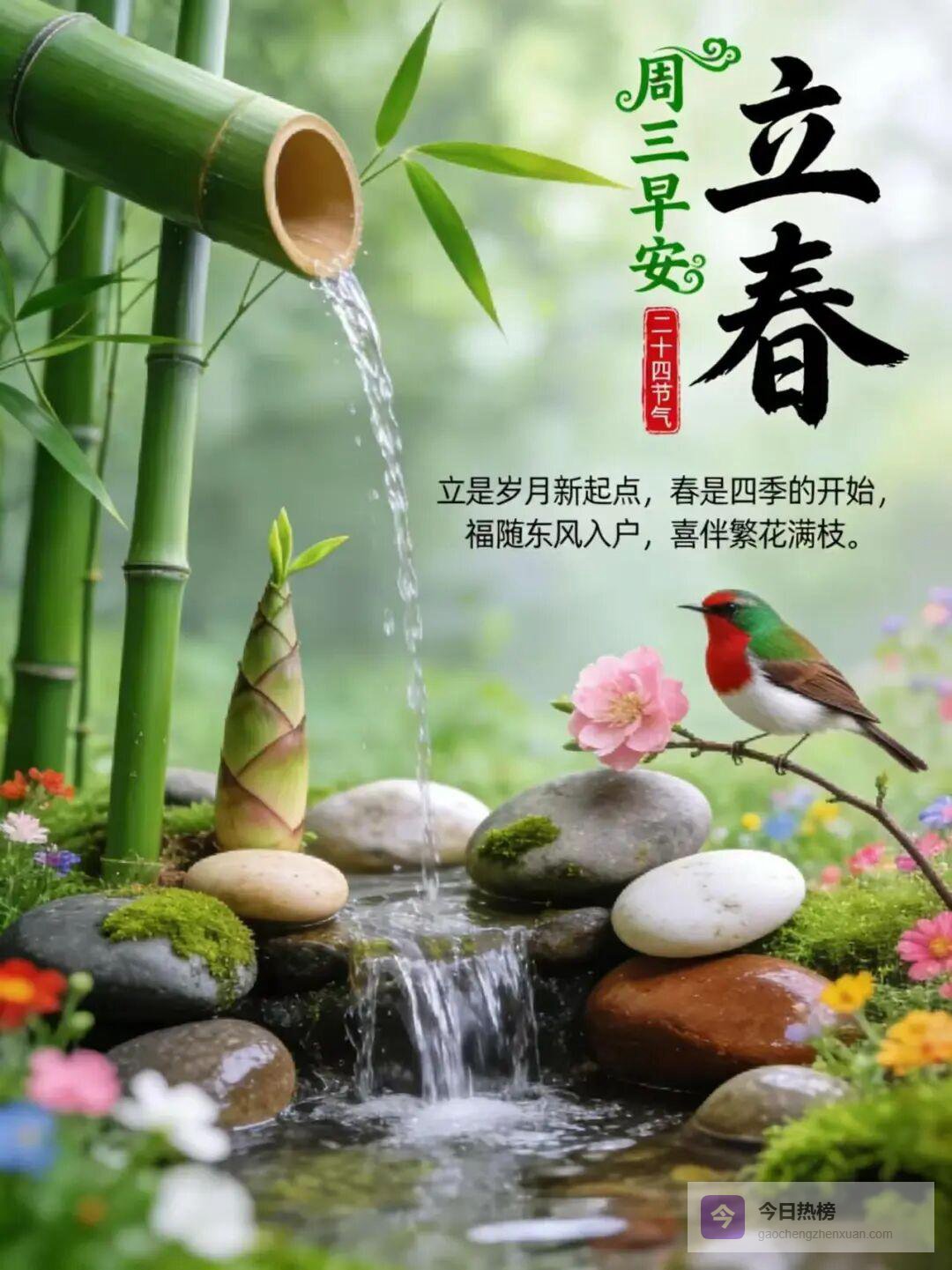 💧💐朋友,立春到了!为您送上最早的问候:春风春雨春夜凉,春枝春叶春草长,🧡🌈春云春月春气爽,春雀春燕春飞忙,春情春丝春景赏,🎉🌹春思春念春日涨,春恋春语埋土壤,🌺🌸立春祝福早送上,祝立春快乐,春纳百福!🧡🌈
