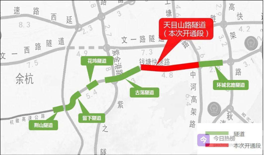 1.2 ◉ 半小时从市中心到闲林,快速路网“连珠成线” 天目山路隧道并非孤立的“单点”,它是钱塘快速路“四纵五横”骨架中的关键一横。此前从市中心到余杭闲林,耗时40-45分钟;隧道通车后,导航显示全程仅需30分钟。沿着钱塘快速路一路向西,古荡隧道、花坞隧道、留下隧道、荆山隧道依次排开,“城西到城东,没有一个红绿灯”的愿景真正落地。
