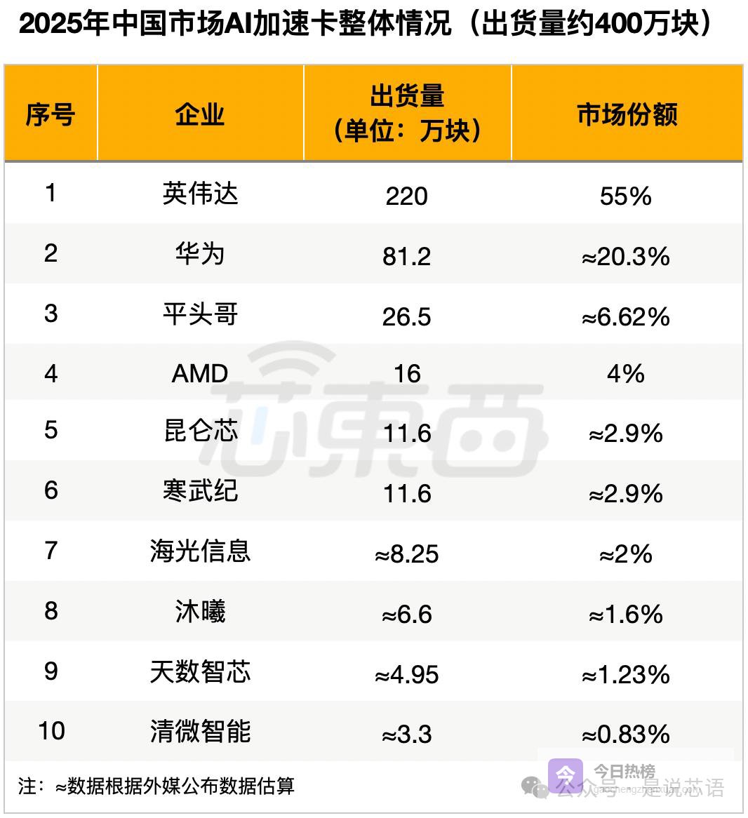 2025年中国市场AI加速卡总出货量400万块,中国厂商占41%。