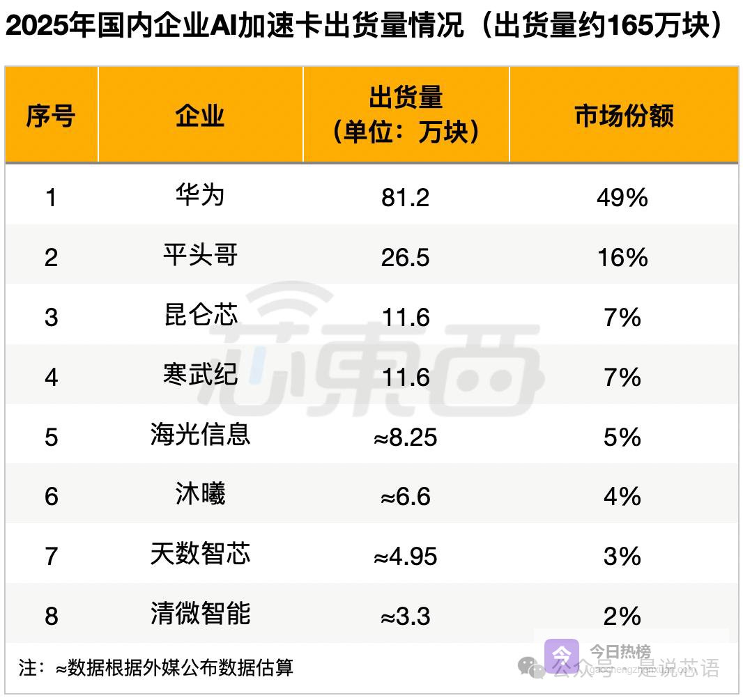 ▲2025年国内企业AI加速卡出货量情况(芯东西制表)