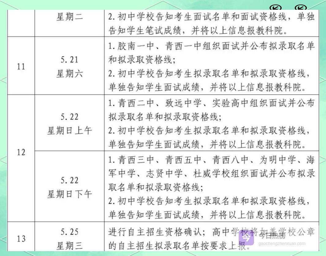 5月22日上午:青西二中、致远中学、实验高中面试并公布名单