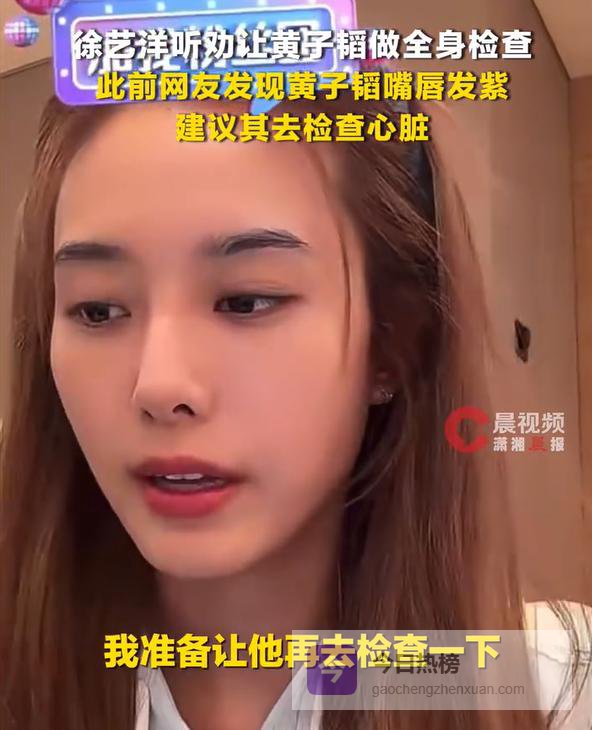 4月7日,徐艺洋直播回应网友关心黄子韬身体状况的问题,称去年已经做了基本检查,今年还会让他做个全身检查。在此前直播中,网友发现黄子韬嘴唇呈明显青紫色,担忧其心脏或血液循环系统存在问题,纷纷留言建议体检。