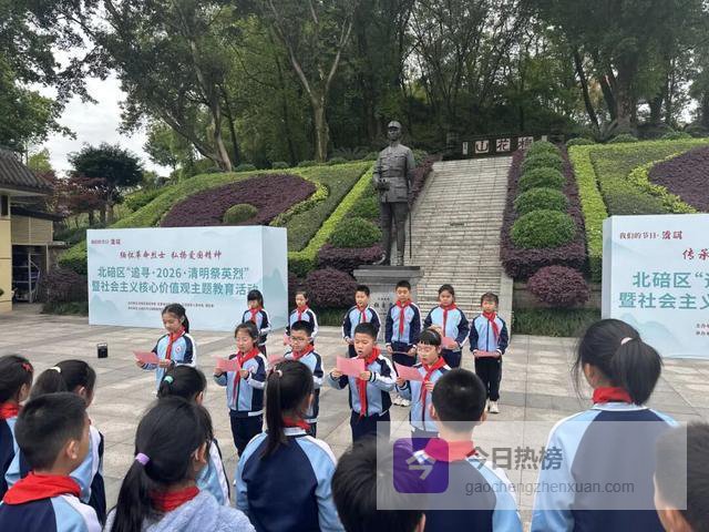 岁月长河波澜壮阔,英雄精神历久弥新。为缅怀革命先烈、弘扬民族精神,重庆市北碚区状元小学的少先队员们怀着无比崇敬的心情走进了张自忠烈士陵园,开展“清明祭英烈 忠勇传薪火”主题爱国主义教育活动,以庄重仪式追思先烈,用赤诚之心致敬英雄。