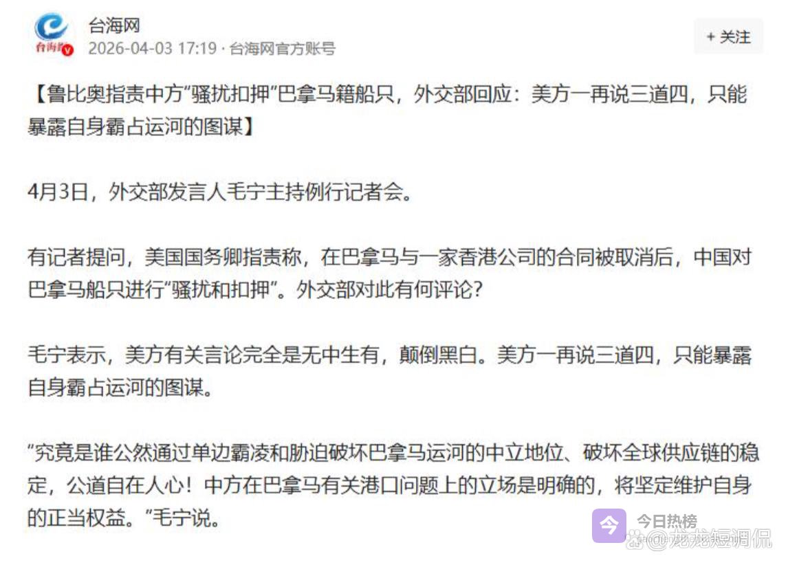 一艘船在中国港口停了几天,美国国务卿卢比奥就跳出来了。4月2日,他在国务院官网发布声明,把这件事上升到"破坏法治""瓦解全球供应链"的高度,还拍胸脯说美国坚定站在巴拿马一边。声明的信号弹打得很响,可接球的人却把手缩回去了。