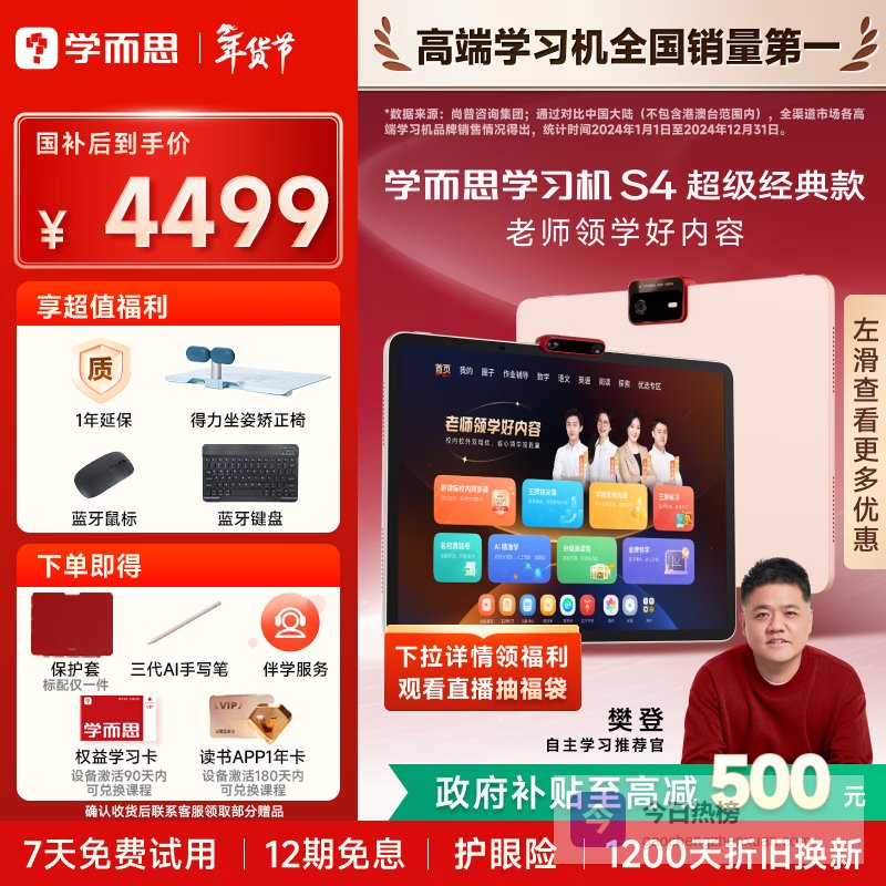 学而思学习机S4超级经典款 AI学习机 护眼好屏 校内同步课培优课 九章大模型 13.2英寸 8 128GB¥
