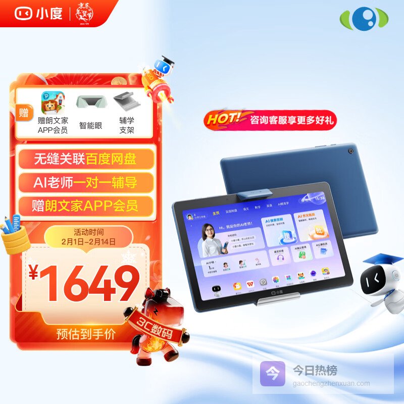 小度学习机G16Pro(6 256GB)小学到高中学生平板电脑 AI家教机 文心大模型 护眼 郎文家 家长管控¥