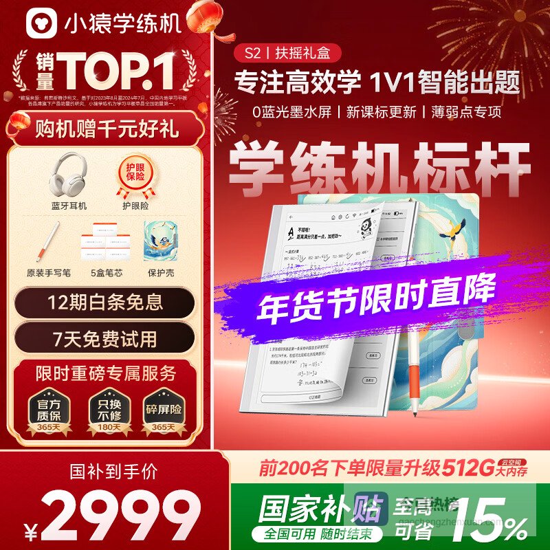 作业帮凭借拍照搜题积累了庞大的题库和用户数据。S30学练机延续了这一优势,并将“学”与“练”深度结合。国家补贴85折使其具有价格吸引力。