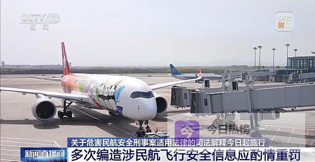 最高人民法院、最高人民检察院《关于办理危害民航飞行安全刑事案件适用法律若干问题的解释》,今天起正式施行。《解释》突出对编造、故意传播涉民航飞行安全虚假恐怖信息犯罪的从严惩治。
