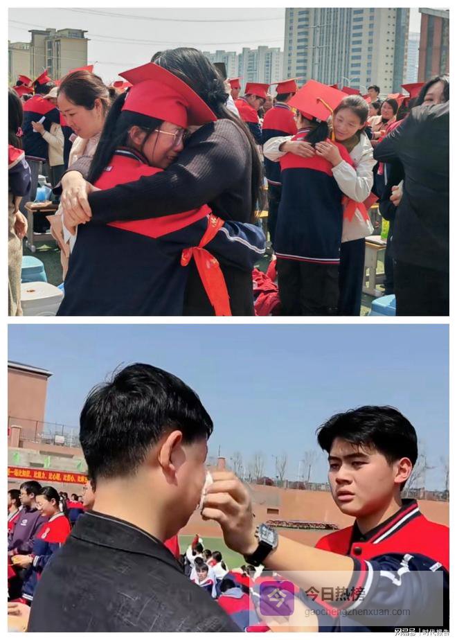 家长们亲手为孩子戴上成人帽,扣上成人徽章,披上励志飘带,轻轻的动作里,是十八载养育的深情,是对孩子成年的祝福,更是一场温柔的成长交接。少年们给父母以紧紧的拥抱,所有的感恩与爱意,都在这一瞬间尽数表达,温情四溢,动人至深。