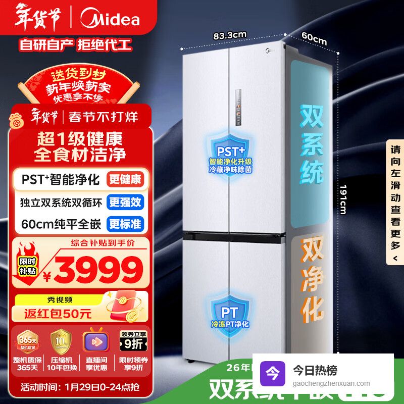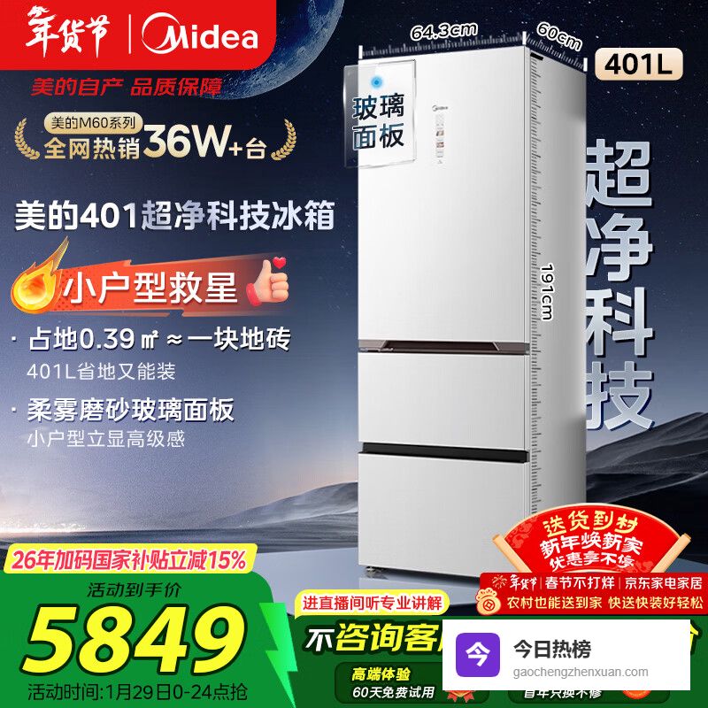 1. 美的超净系列401升三门冰箱BCD-401WUTGPZM