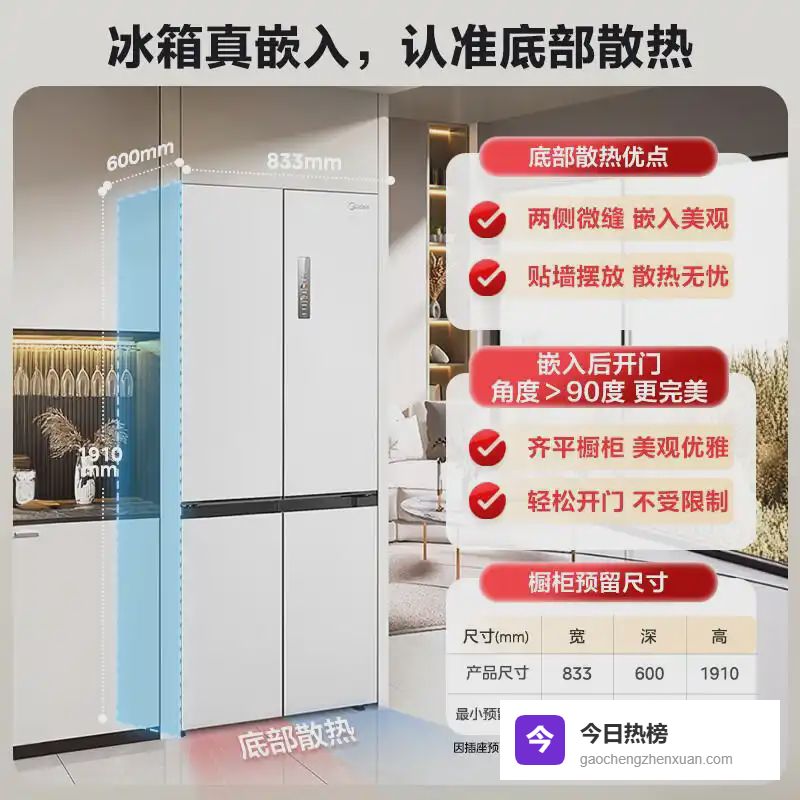在当代家居设计中,厨房已不再是单纯的烹饪空间,而是融合了生活美学与实用功能的家庭核心区域。一台设计精良的冰箱不仅能满足食材储存的基本需求,更能成为厨房中的视觉焦点,提升整体空间质感。美的品牌推出的多款超薄嵌入式冰箱系列,正是针对现代家庭对空间利用率和美观度的双重追求而设计。这些产品不仅拥有出色的制冷性能,更在尺寸设计上做到极致纤薄,完美适配各类厨房布局。从三门到十字门,从401升到539升大容量,不同型号满足多样化的家庭需求。接下来将详细介绍五款各具特色的超薄嵌入式冰箱,帮助您找到最适合自己厨房的那一款。