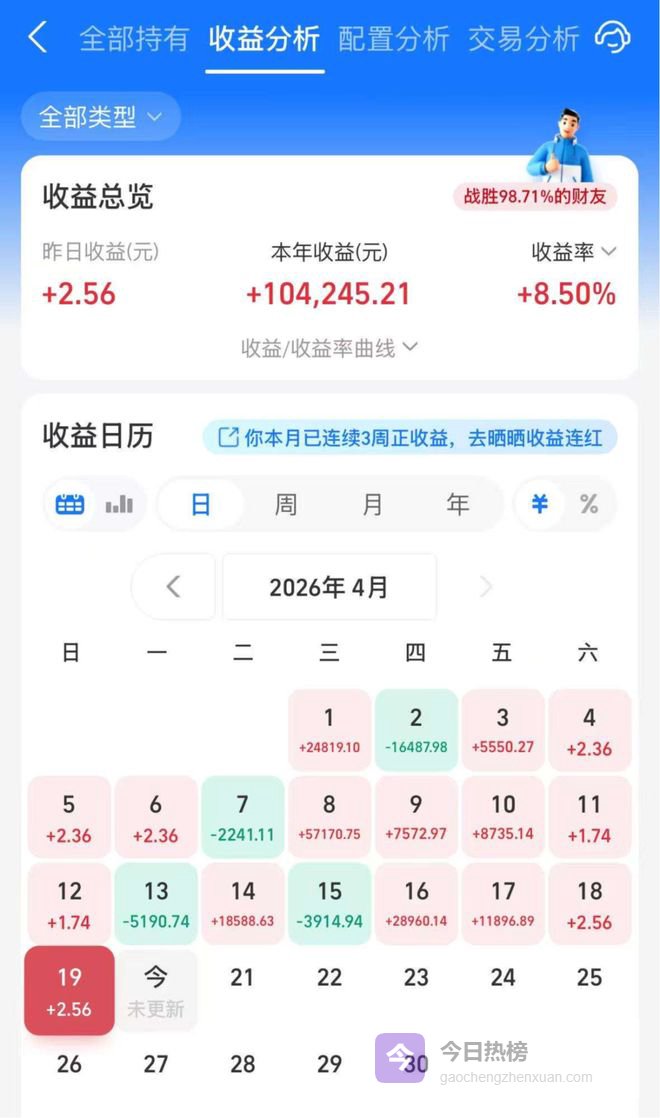 1、加仓2个单位$弘毅远方消费升级混合C$,现在依然是轮动补涨行情,对于科技中的AI应用,目前正在持续补涨中,跌下去的时候我一直在保持越跌越买,现在我持仓的AI应用基金弘毅远方消费已经翻红了,今天涨完收益更高,我继续做一些加仓,V型反弹确立后,向上会更轻松。近期A股市场科技反弹先行,在放量背景下估计延续性会很不错,拿稳了筹码才好赚钱。