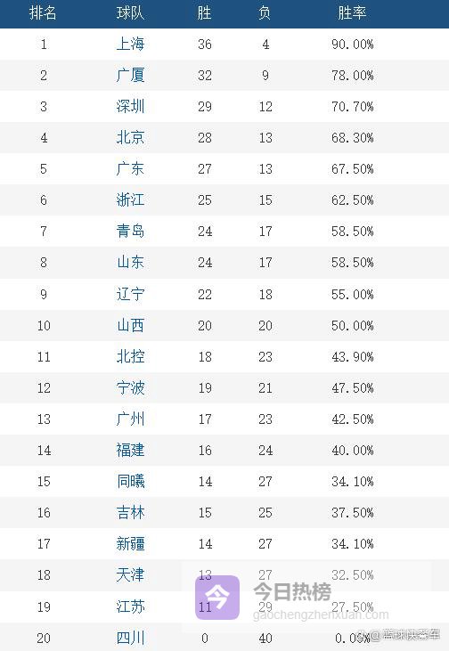 积分榜第10名则属于山西队,他们的战绩为20胜20负。而积分榜第11名的球队则是北控队,这一轮比赛他们输给了广厦,战绩变成18胜23负。而积分榜第12名则是宁波队,他们的战绩为19胜21负,只不过,由于少赛一场的缘故,宁波队在排名上稍微吃亏。第13名则属于广州队,战绩为17胜23负,截止到目前,也就只剩下北控、宁波和广州,这三支还没有确定季后赛。