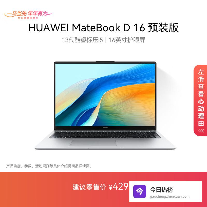 【京东自营】华为MateBookD16店铺预装Windows版轻薄笔记本电脑13代高性能标压酷睿i5¥