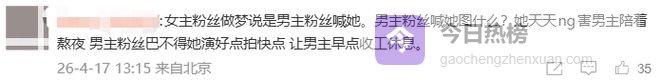 可惜粉丝无视了官方的努力端水,现在就是不论剧方发点什么,哪怕是在正经维权的时候,女方粉丝也不忘强调自家是“大女主”,当然,男方粉丝也不遑多让,也没少说自家是“大男主”。