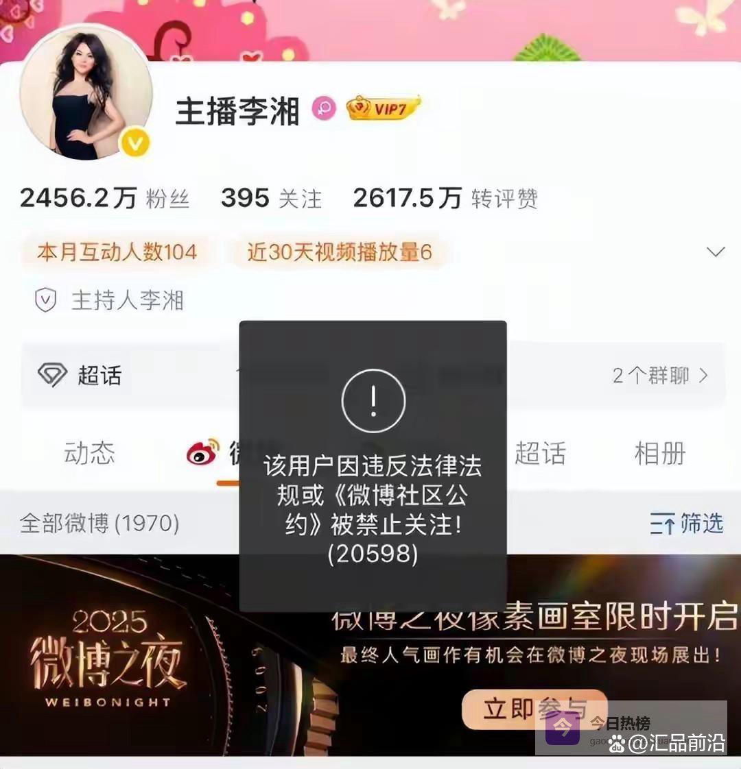 李湘的社交账号被禁止关注了。这件事和那些真真假假的绯闻关系不大。平台算法有一套自己的逻辑。它识别出了一种长期存在的高调炫富行为。然后触发了自动限流机制。
