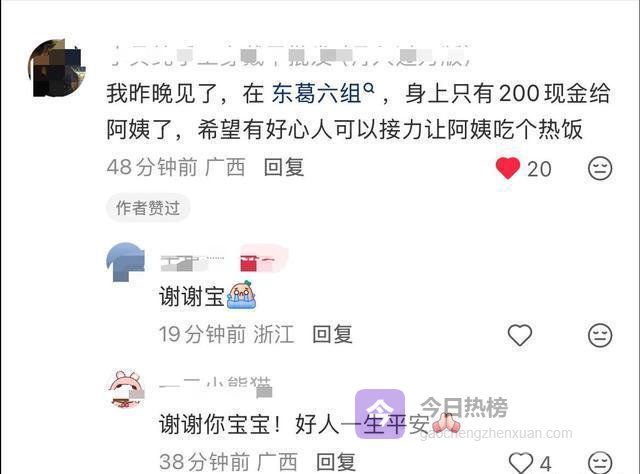 有人说在一个十字路口碰见过她,顺手塞给了她200块现金!