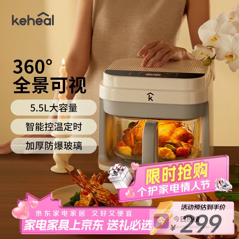 推荐第6款:科西KEHEAL空气炸锅5.5L全自动