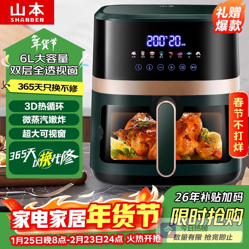 一说起空气炸锅,很多朋友第一个想到的可能就是山本。它可以说是最早把空气炸锅这个概念以亲民价格带入大众视野的品牌之一。山本给人的印象就是“皮实耐用、价格亲民”,很多型号都是经典的机械旋钮控制,操作简单直白,特别受长辈们喜欢。
