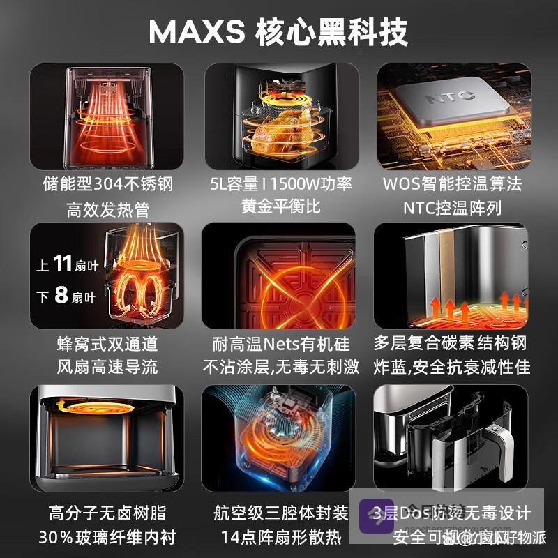 苏泊尔是我们的老朋友了,在锅具和厨电领域根基深厚。他们做空气炸锅,优势在于对“锅”本身的理解,比如在炸篮的材质、涂层和形状设计上很有心得,让导热和清洗都更优化。产品性价比很高,用主流的价格往往能买到功能相当齐全的型号。