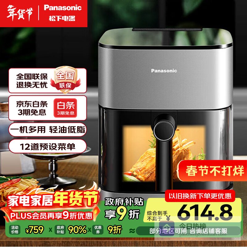 松下(Panasonic)多功能全景可视窗家用全自动无油免翻面空气炸锅5升大容量NF-HC500-S¥