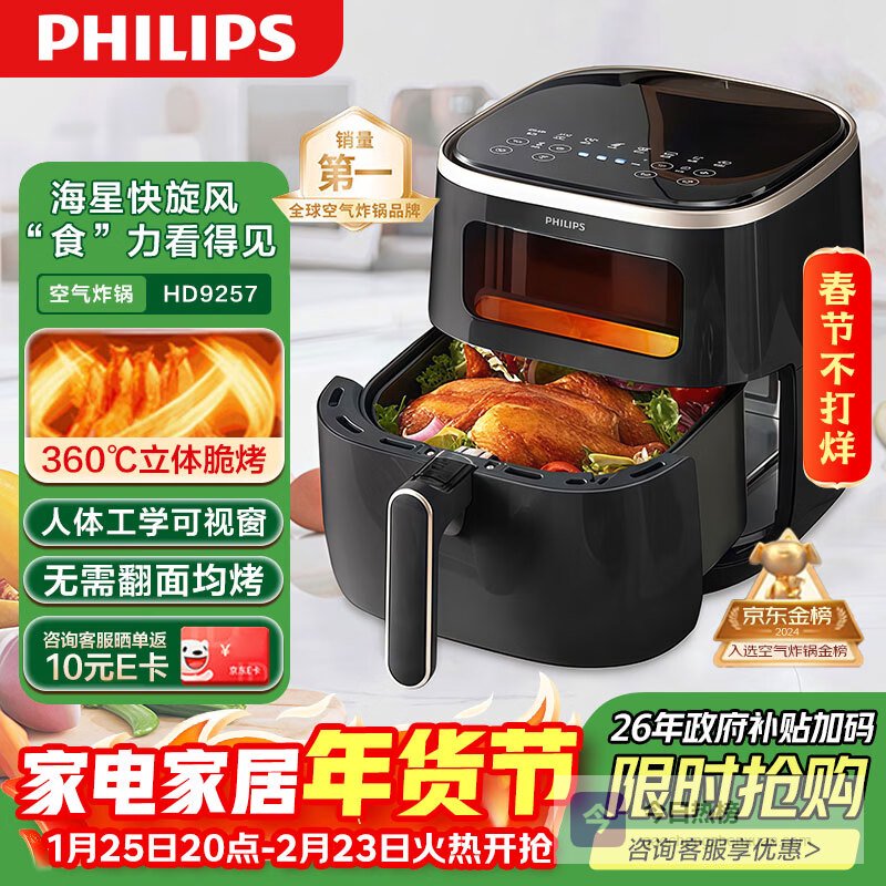 推荐第10款:飞利浦HD9257/80空气炸锅