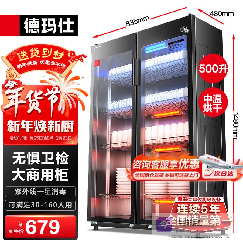 德玛仕(DEMASHI)商用消毒柜 双开门星级消毒柜烘干酒店餐饮饭店厨房食堂学校用茶水餐具杯子碗筷柜商用立式大容量 500L标准款 定时丨适合30-160人¥