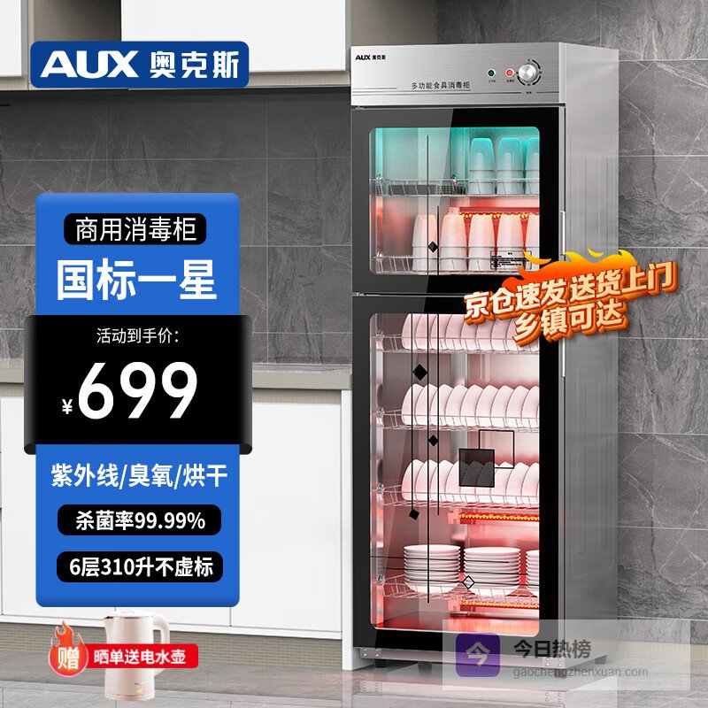 如果你需要一个能够兼顾家用和轻商用需求的“多面手”,奥克斯这款380S双开门消毒柜值得一看。它采用了“紫外线带臭氧+中温烘干”的组合方案,这种配置的优势在于,臭氧的强渗透性可以弥补紫外线直线传播的不足,对碗碟缝隙、筷子内部进行更彻底的消毒,而中温烘干则能有效避免水渍残留,防止二次污染,同时避免了纯高温消毒对部分餐具的限制。双开门设计和大容量内胆,使其既能满足三代同堂大家庭的日常餐具消毒需求,也能作为小型餐厅、奶茶店、私房菜后厨的消毒设备。它的功能设定在商用与家用之间取得了不错的平衡,既保证了足够的消毒强度,又考虑到了日常使用的便捷性与广泛适用性。