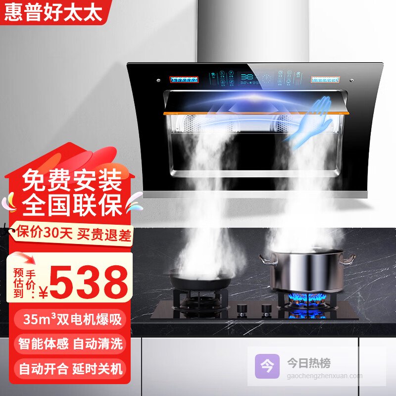 惠普好太太油烟机家用侧吸式免清洗抽油烟机大吸力自动清洗抽烟机 75cm宽 挥手智能体感+自动开合+免拆洗 免费安装¥