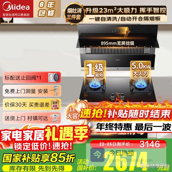 2026年油烟机套装推荐哪款,口碑好的几款品牌型号分享一、美的1️⃣ 强劲吸力:这台油烟机能达到23立方米每分钟的强大吸烟速度,基本能快速把油烟吸走,让厨房空气更清新。特别是在爆炒时,油烟多到飞溅,它还能稳稳捕捉,不会飘到别的地方。