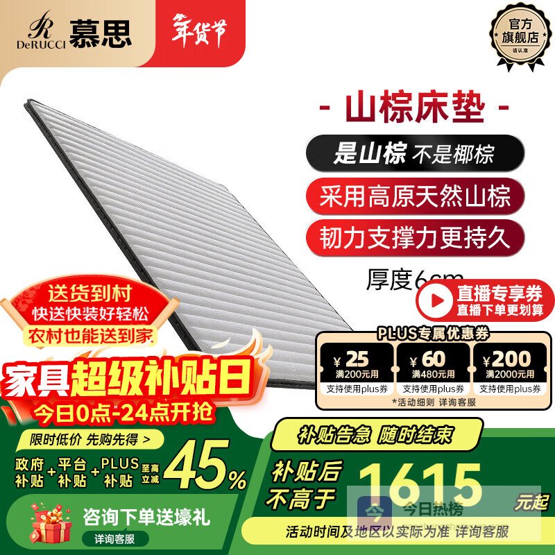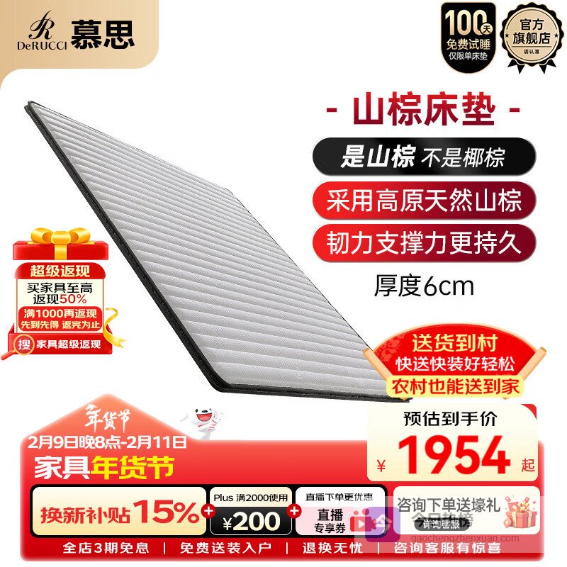 慕思(de RUCCI)椰棕床垫 山棕硬垫1.5m防螨棕榈薄垫1.8米硬垫 6cm(天然山棕)+MCW1-110 1.2*1.9米¥