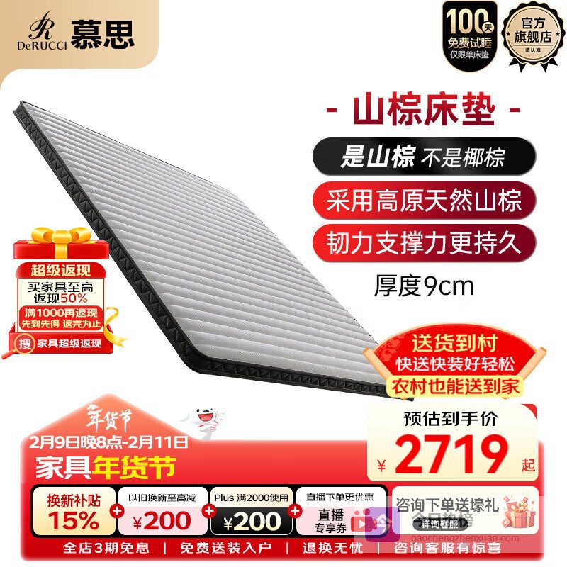 慕思(de RUCCI)绿野山棕天然山棕床垫硬垫山棕垫防螨棕榈薄垫 1.8*2米偏硬¥