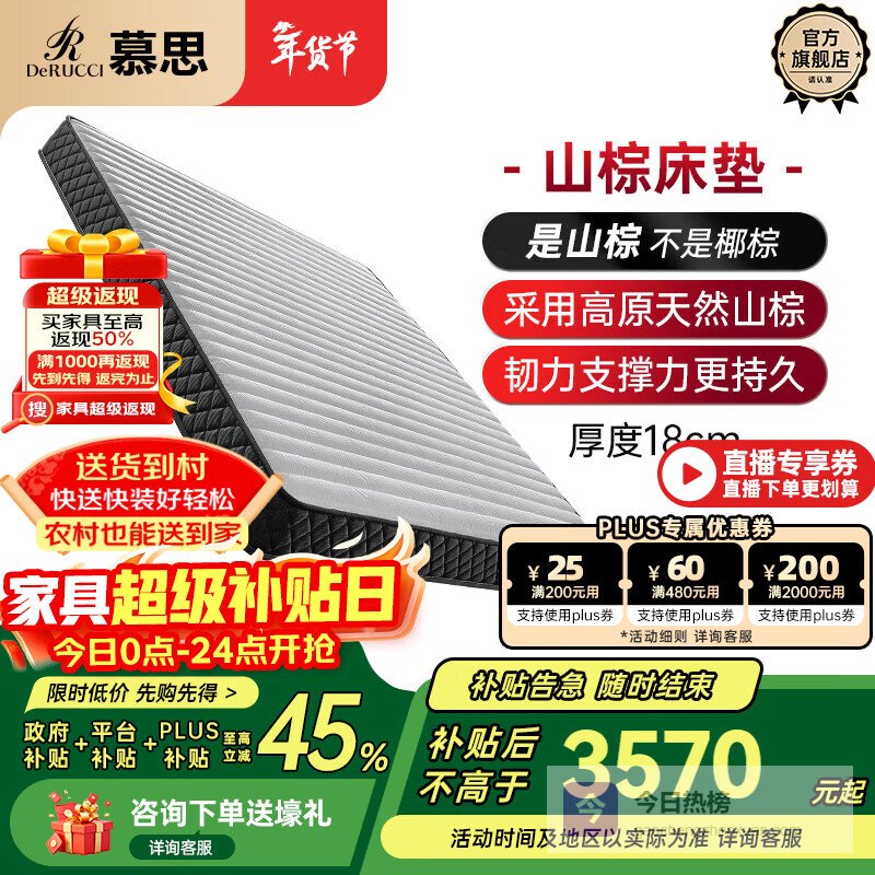 慕思(de RUCCI)绿野山棕硬垫山棕垫防螨棕榈薄垫天然山棕床垫1.5*2米偏硬¥