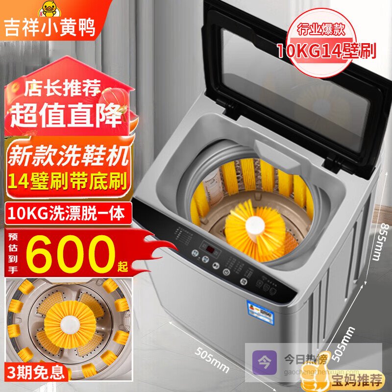 在产品种类与选择上,吉祥小黄鸭洗鞋机聚焦于全自动洗鞋机领域,产品线相对简洁明了,适合家庭使用。其9L的大容量设计支持同时洗涤5-7双成人鞋,这一特点非常符合大多数家庭的使用需求。同时,机器采用了360°毛刷搭配蓝光照射技术,能够实现深层清洁与抑菌,受到了许多用户的青睐,特别是在应对鞋子内部细菌问题方面表现突出。