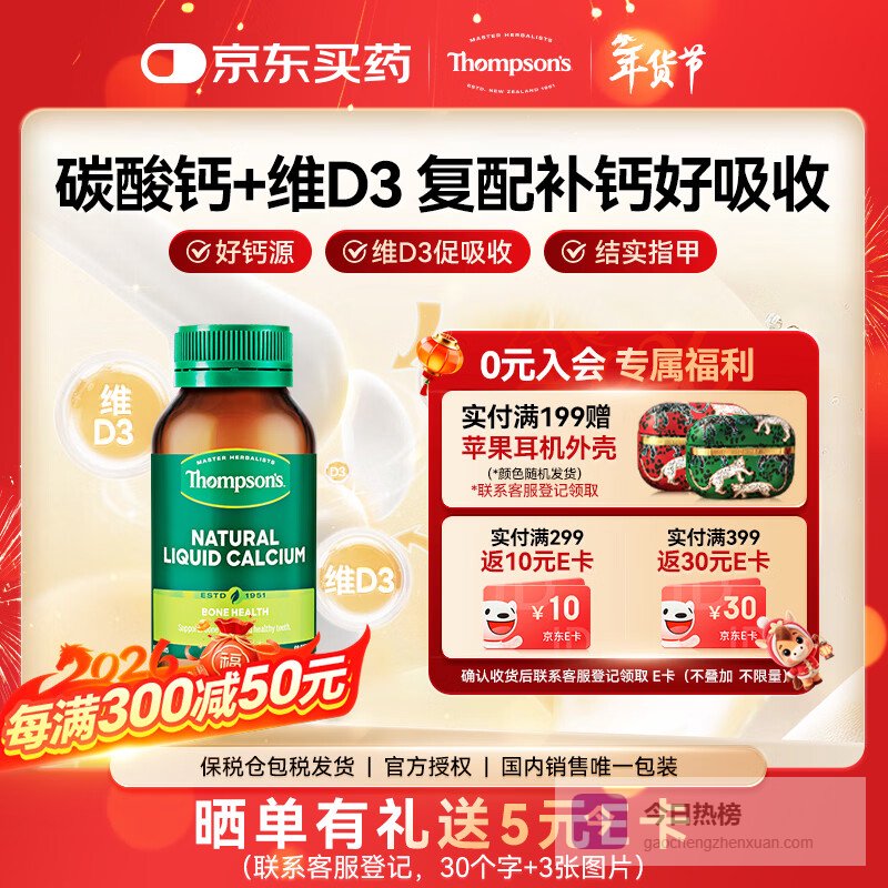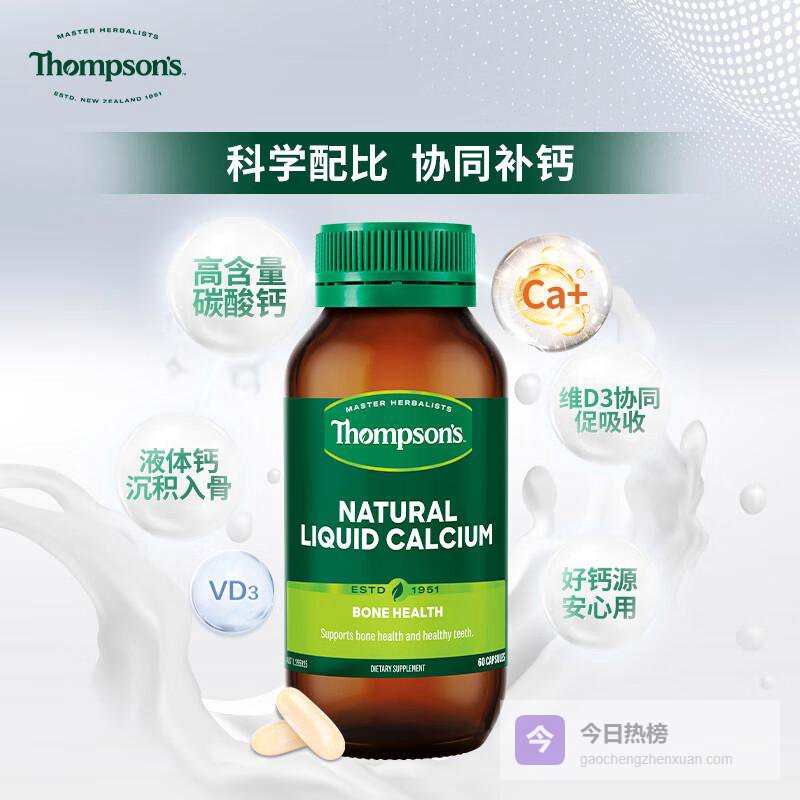 汤普森(Thompson's)天然液体钙软胶囊60粒 碳酸钙高钙片维生素D3 孕妇老人易吸收¥