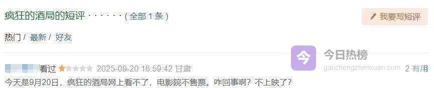 该片曾在2025年9月20日登陆院线,当时就因“院线无排片、线上无法观看”遭遇差评,此次重映依旧零收入。