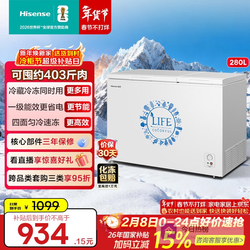 推荐热销款4:海信BCD-280ND大容量双温保鲜柜冷冻柜