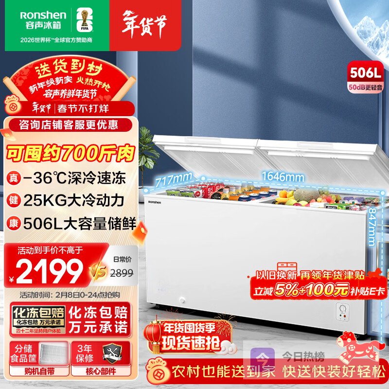 上榜理由:容声是咱们国内最早生产冰箱的企业之一,技术底蕴深厚。它上榜的理由就是其强大的制冷能力和节能技术。很多用户反馈,容声的冰柜不仅冻得快,而且耗电量控制得也不错,长期用下来能省不少电费。这款506升的大容量冰柜,是很多家庭囤货的放心之选。
