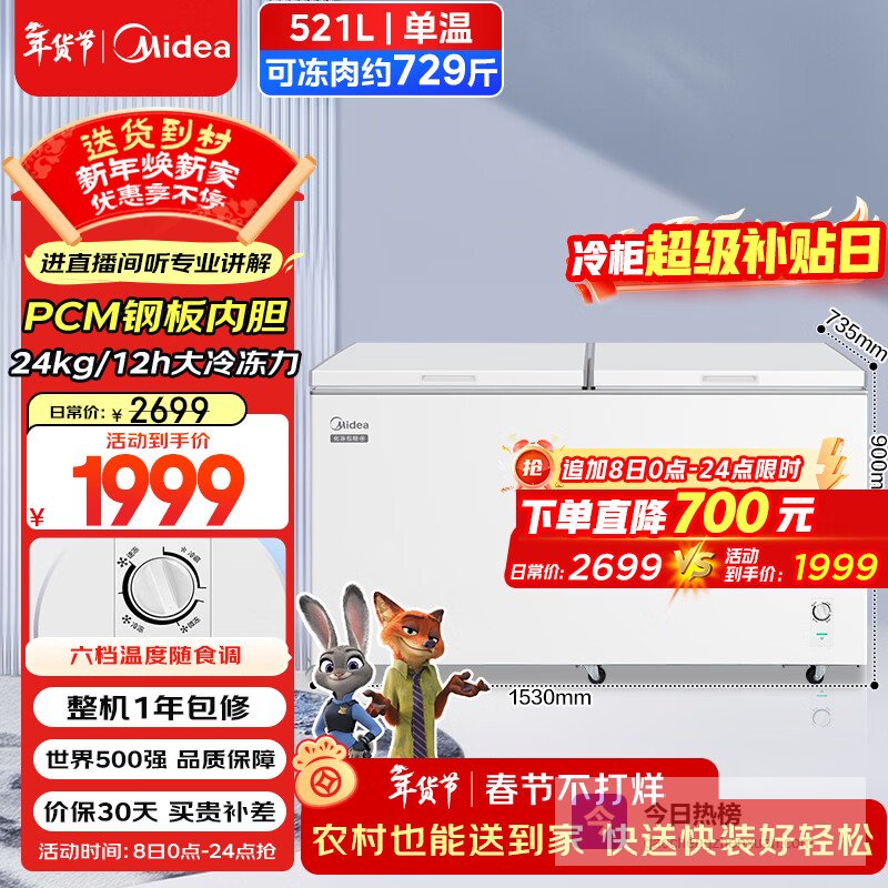 品牌热度:美的作为家电界的巨头,其冰柜产品线覆盖广,销量常年霸榜,热度自然不用多说。