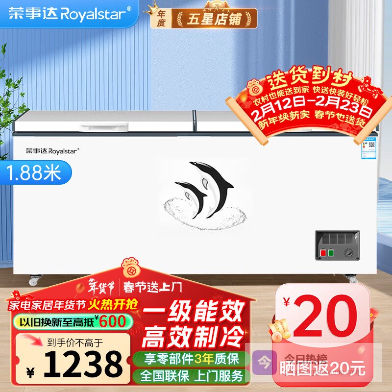荣事达(Royalstar)冰柜商用大容量全冷冻卧式冰柜家用冷藏冷冻两用冷柜双温商用大冰柜冷冻柜展示柜 【高性价比】788单温【一级能效 机械温控】¥