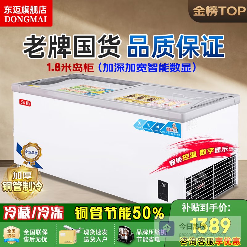 上榜理由:东迈是专注于商用制冷设备的品牌。它上榜的理由就是其超大的容量和专业的展示效果。比如这款1.8米的大容量岛柜,不仅适合家庭大量囤货,很多小超市、甜品店也会用它来做展示和储存。用户反馈说,制冷速度快,容量惊人,简直是“储物神器”。