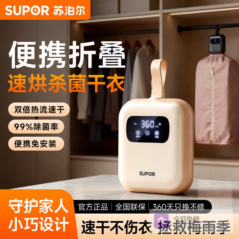 【品牌直营】苏泊尔【便携折叠】烘干机便携干衣机家用小型旅行内衣裤护理机迷你烘衣架-A必备出差宿舍折叠¥