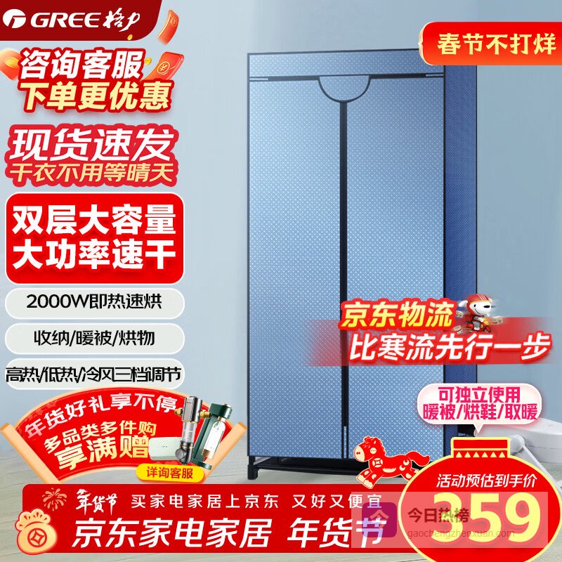 【京东自营】格力【2000W大功率干得快一机多用】家用干衣机烘干机烘衣机烘干衣柜脱水机高温除菌螨NF¥