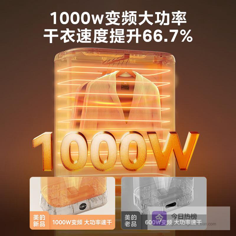 1️⃣快速高效烘干:强劲的1000W变频功率,全方位立体热风迅速蒸干衣物,节省了您的时间。无论是急需的工作服,还是孩子的运动服,都能在短时间内恢复干爽,让您的生活更有条理。