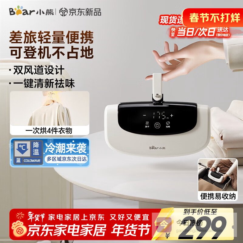 【京东自营】小熊【差旅首选】旅行烘干机家用烘衣服便携烘干小型旅行折叠内衣内裤迷你烘衣免安装干衣机HG¥