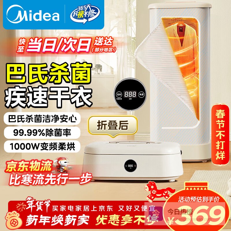 【京东自营】美的【折叠迷你便携】干衣机烘干机家用小型旅行烘衣机婴儿衣物护理机消毒脱水机年货节礼物HB¥