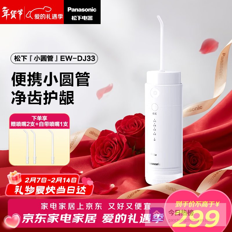 松下(Panasonic)小圆管便携冲牙器儿童成人洗牙器水牙线洁牙器牙齿冲洗器正畸情人节礼物新年会礼品送男女友DJ33白¥
