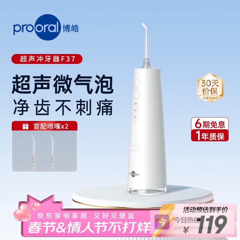 博皓(prooral)【情人节礼物】F37冲牙器手持立式洗牙器声波水牙线洗牙器 象牙白 230ml¥