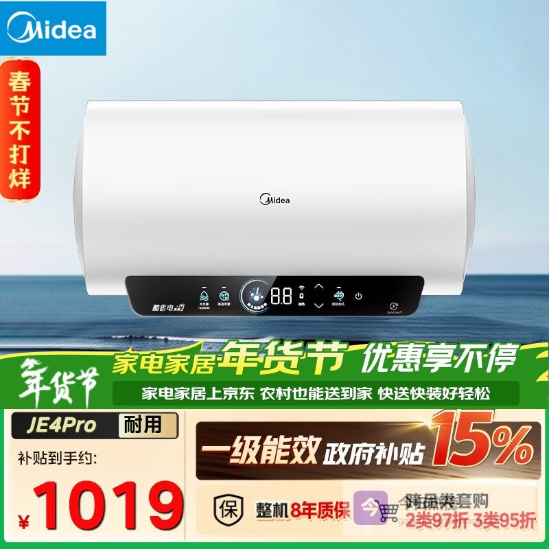 美的(Midea)储水式电热水器终身免换镁棒50升2500W一级能效60倍耐用加热管酷省电自动关机F50-25JE4Pro(HE)¥